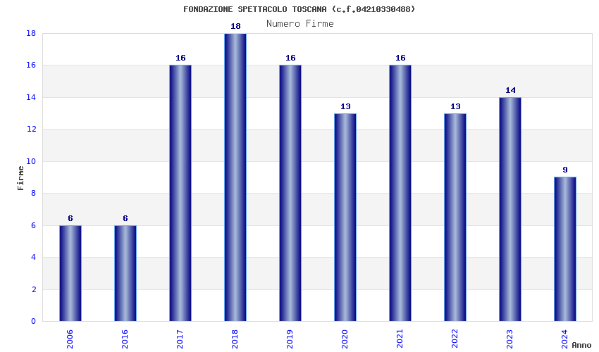 | Anno | Firme | Importi | Media | Naz. | Reg. | Prov. | Comu. |