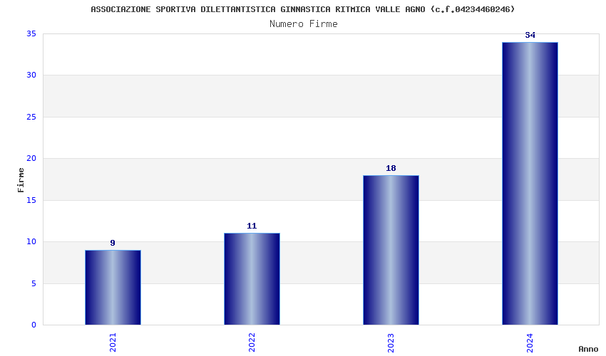 | Anno | Firme | Importi | Media | Naz. | Reg. | Prov. | Comu. |