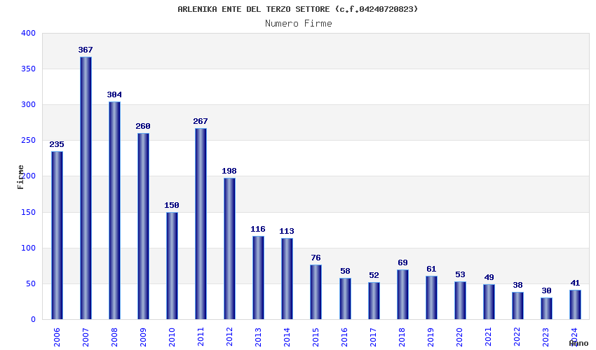 | Anno | Firme | Importi | Media | Naz. | Reg. | Prov. | Comu. |