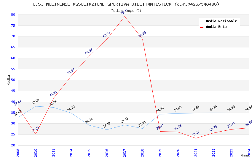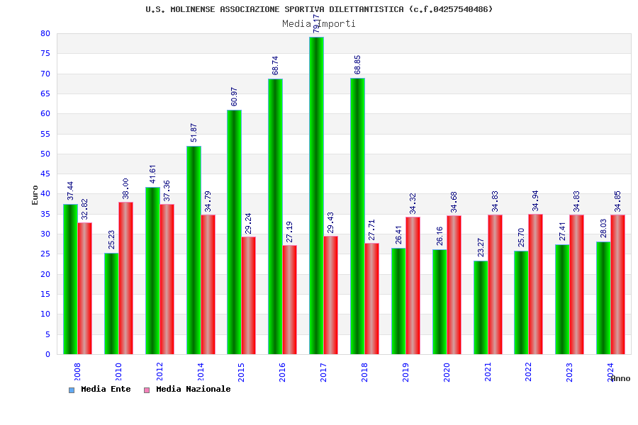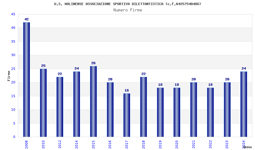 | Anno | Firme | Importi | Media | Naz. | Reg. | Prov. | Comu. |