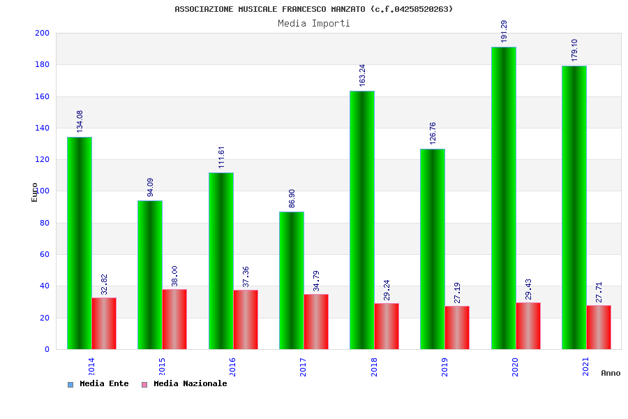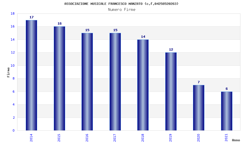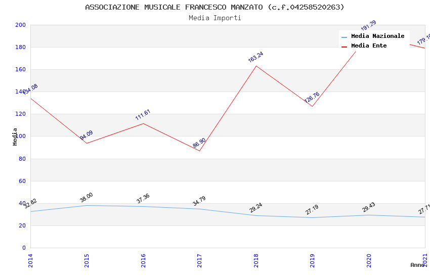 | Anno | Firme | Importi | Media | Naz. | Reg. | Prov. | Comu. |