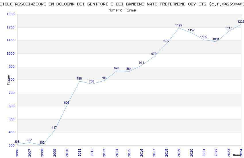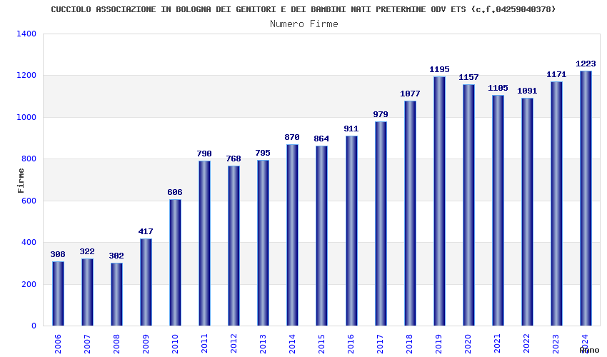 | Anno | Firme | Importi | Media | Naz. | Reg. | Prov. | Comu. |