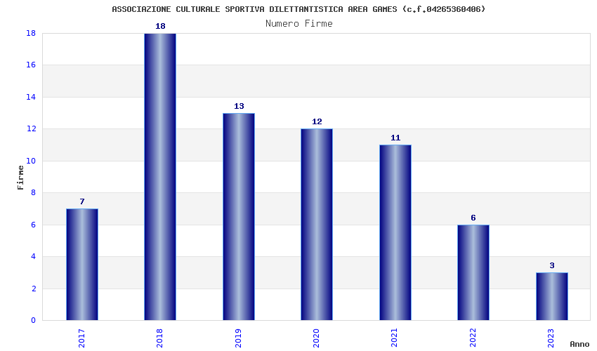 | Anno | Firme | Importi | Media | Naz. | Reg. | Prov. | Comu. |