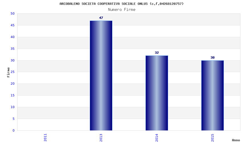 | Anno | Firme | Importi | Media | Naz. | Reg. | Prov. | Comu. |