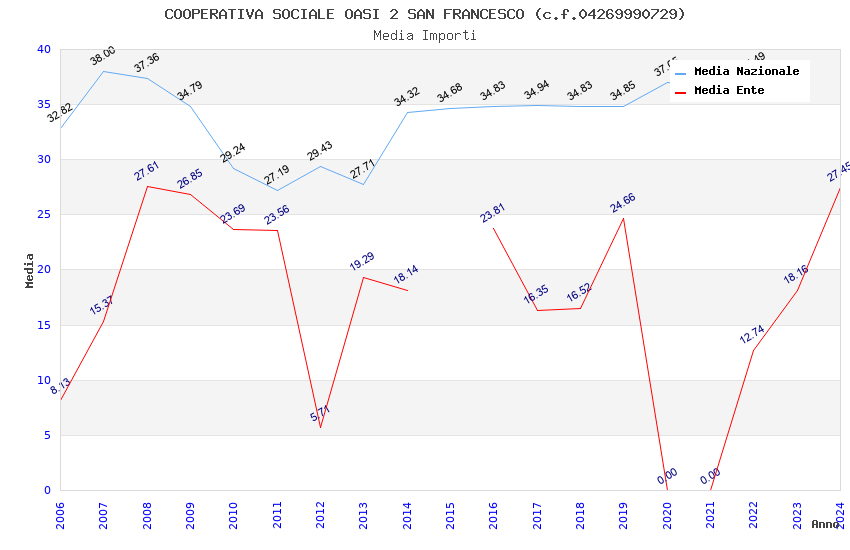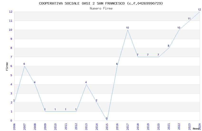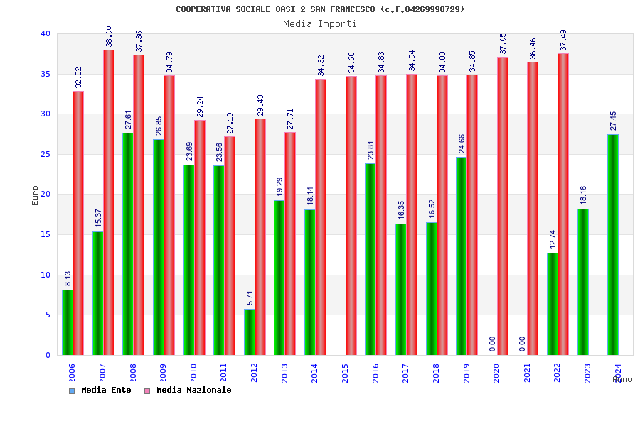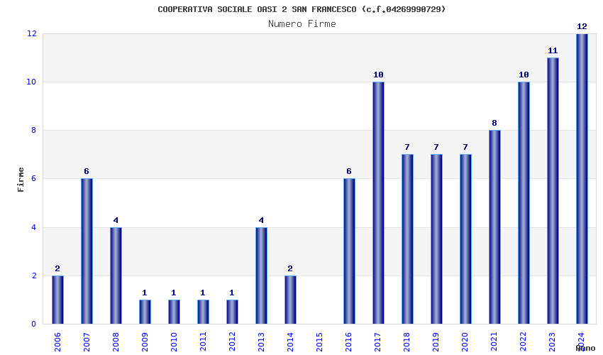 | Anno | Firme | Importi | Media | Naz. | Reg. | Prov. | Comu. |