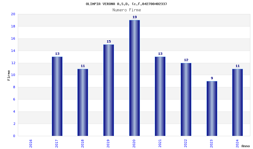 | Anno | Firme | Importi | Media | Naz. | Reg. | Prov. | Comu. |