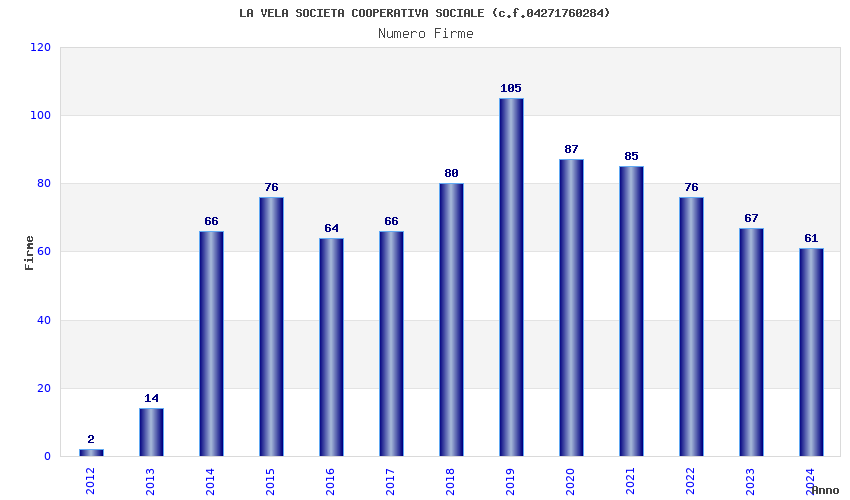 | Anno | Firme | Importi | Media | Naz. | Reg. | Prov. | Comu. |