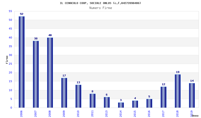| Anno | Firme | Importi | Media | Naz. | Reg. | Prov. | Comu. |