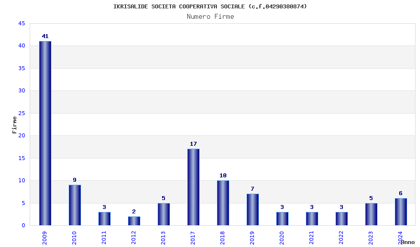 | Anno | Firme | Importi | Media | Naz. | Reg. | Prov. | Comu. |