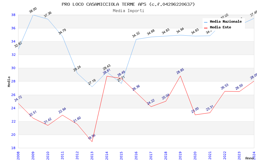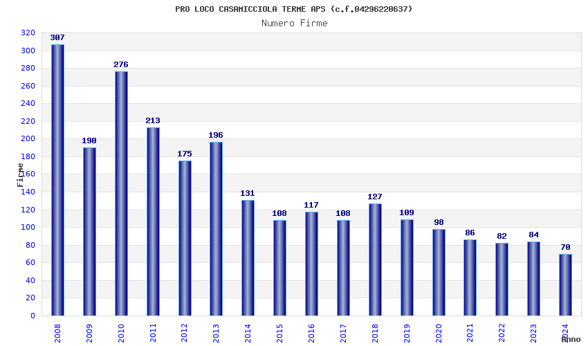 | Anno | Firme | Importi | Media | Naz. | Reg. | Prov. | Comu. |