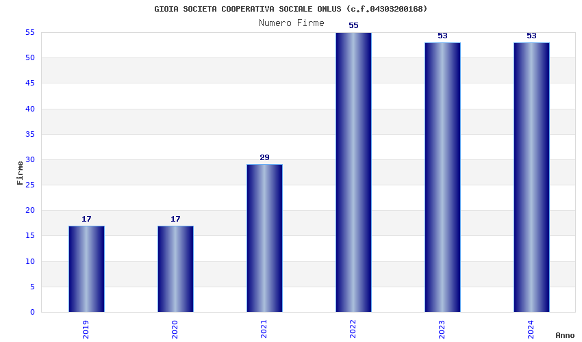 | Anno | Firme | Importi | Media | Naz. | Reg. | Prov. | Comu. |