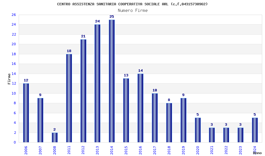 | Anno | Firme | Importi | Media | Naz. | Reg. | Prov. | Comu. |