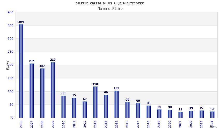 | Anno | Firme | Importi | Media | Naz. | Reg. | Prov. | Comu. |