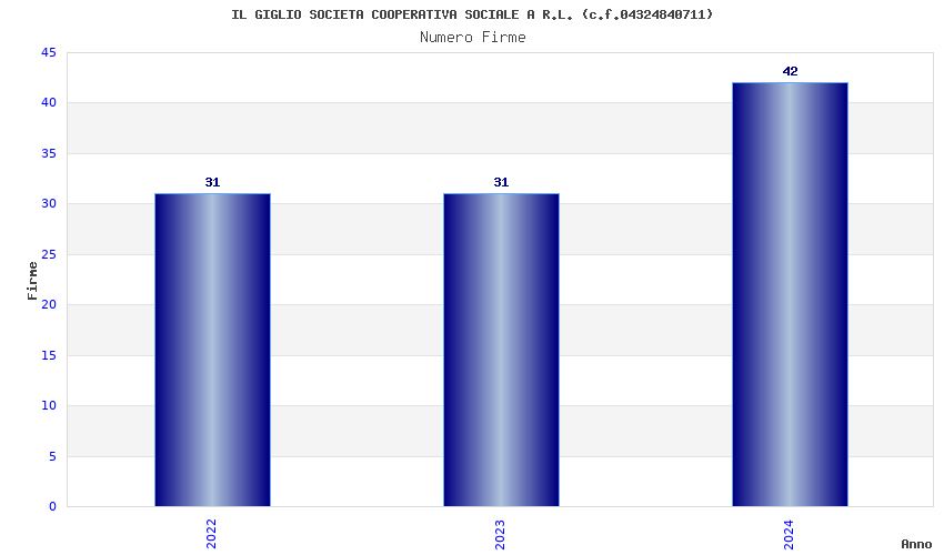 | Anno | Firme | Importi | Media | Naz. | Reg. | Prov. | Comu. |