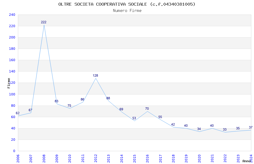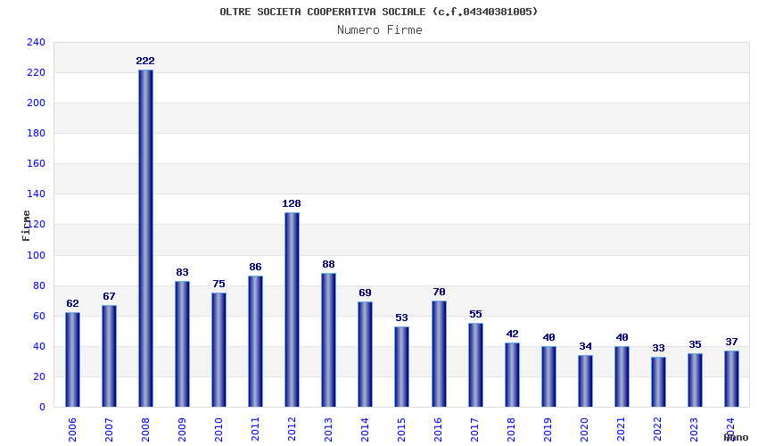 | Anno | Firme | Importi | Media | Naz. | Reg. | Prov. | Comu. |