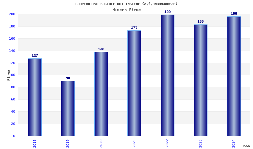 | Anno | Firme | Importi | Media | Naz. | Reg. | Prov. | Comu. |
