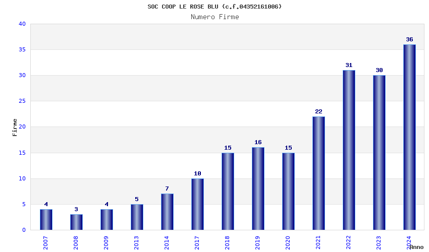 | Anno | Firme | Importi | Media | Naz. | Reg. | Prov. | Comu. |