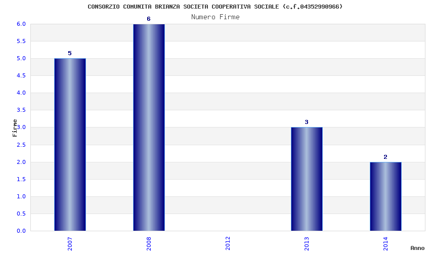 | Anno | Firme | Importi | Media | Naz. | Reg. | Prov. | Comu. |