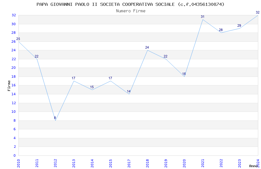| Anno | Firme | Importi | Media | Naz. | Reg. | Prov. | Comu. |