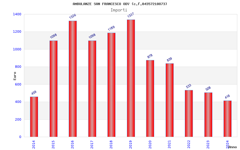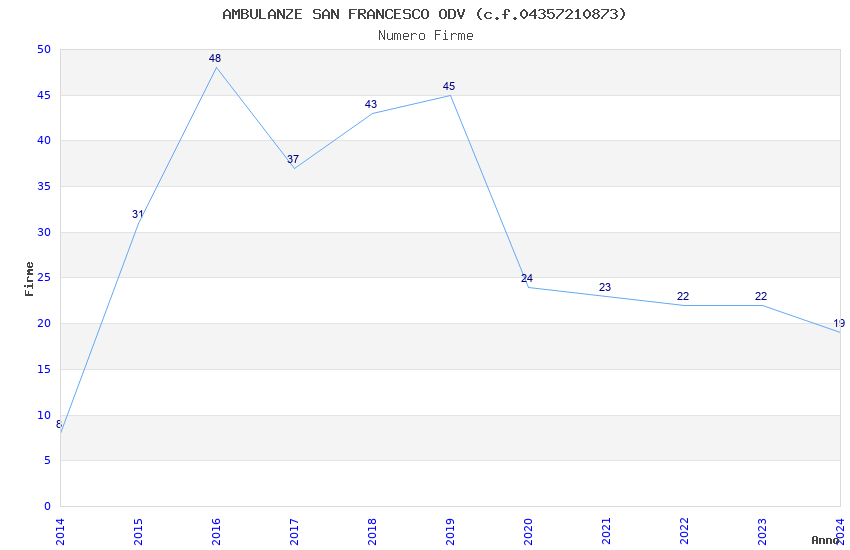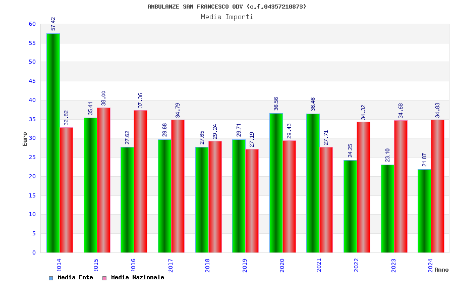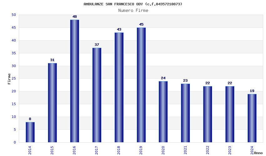 | Anno | Firme | Importi | Media | Naz. | Reg. | Prov. | Comu. |