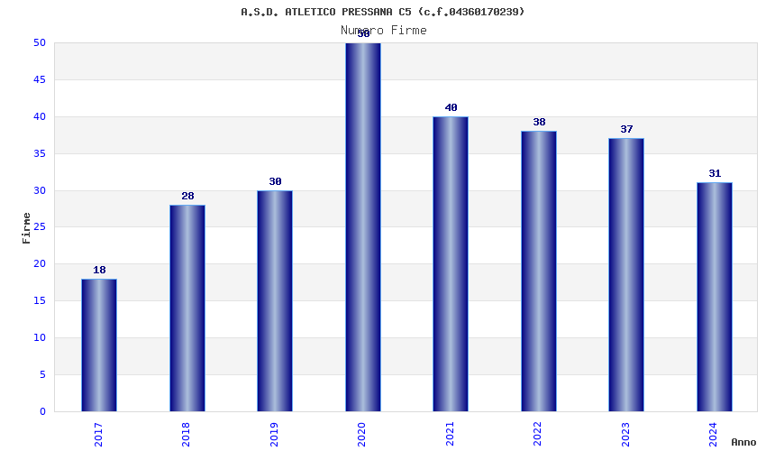 | Anno | Firme | Importi | Media | Naz. | Reg. | Prov. | Comu. |