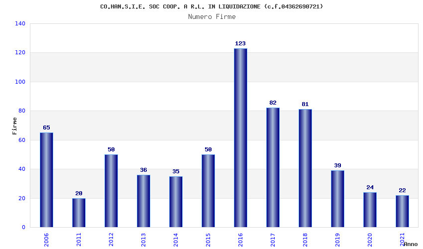 | Anno | Firme | Importi | Media | Naz. | Reg. | Prov. | Comu. |