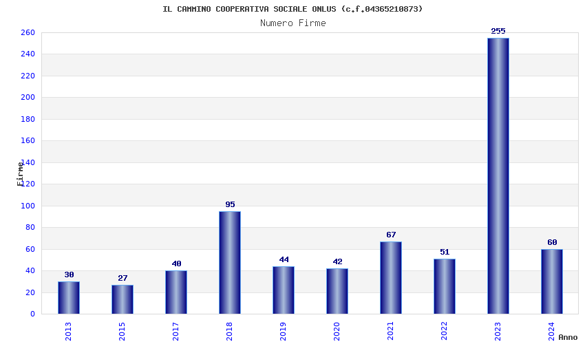 | Anno | Firme | Importi | Media | Naz. | Reg. | Prov. | Comu. |