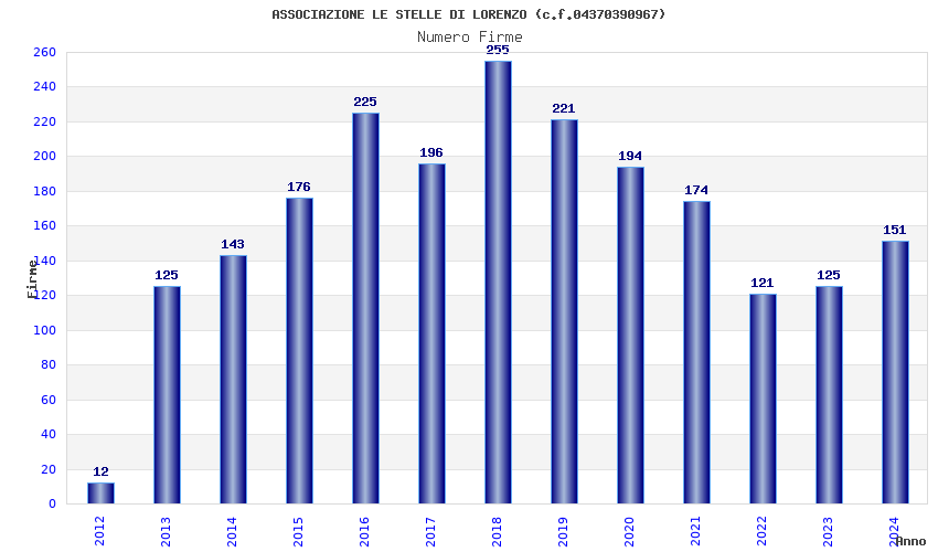 | Anno | Firme | Importi | Media | Naz. | Reg. | Prov. | Comu. |