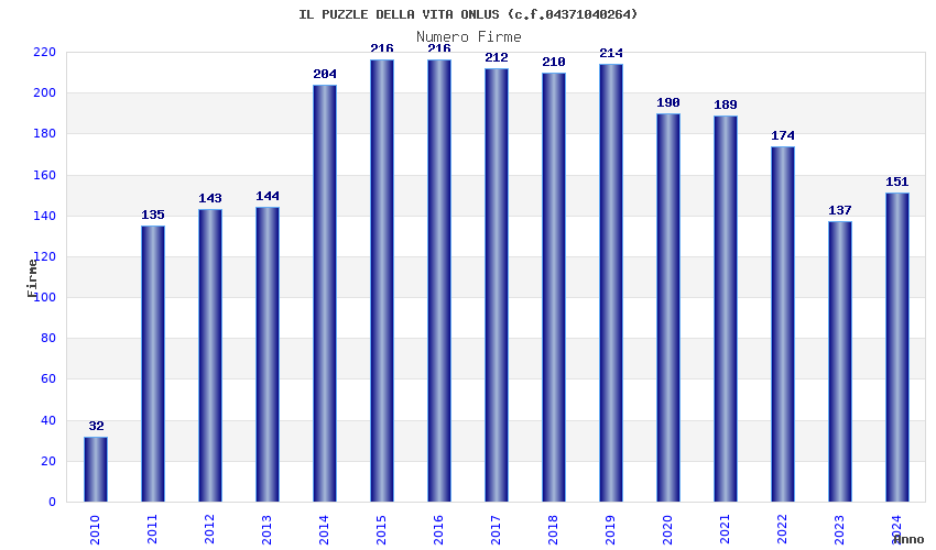 | Anno | Firme | Importi | Media | Naz. | Reg. | Prov. | Comu. |