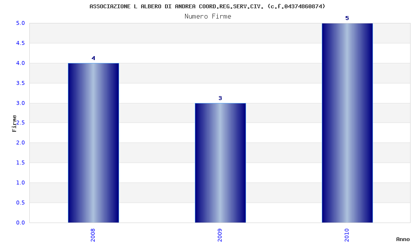 | Anno | Firme | Importi | Media | Naz. | Reg. | Prov. | Comu. |