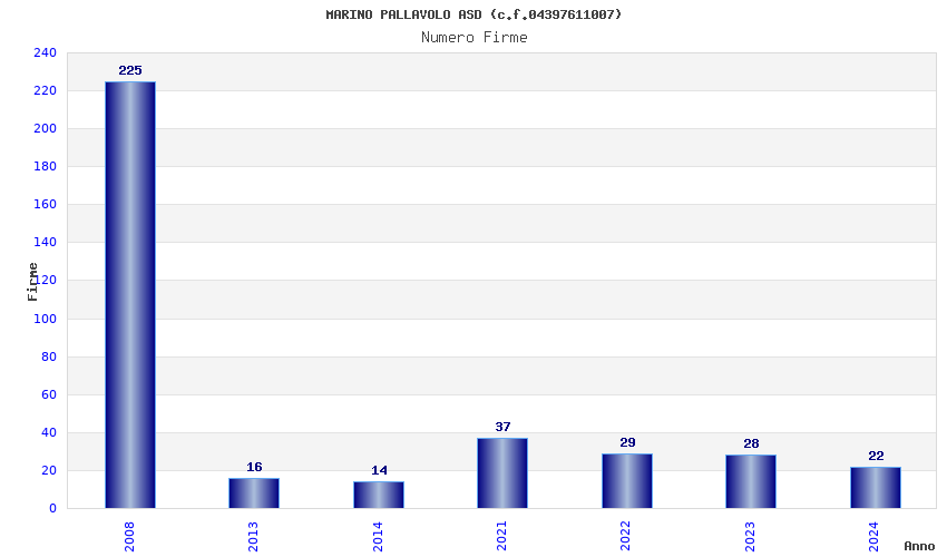 | Anno | Firme | Importi | Media | Naz. | Reg. | Prov. | Comu. |