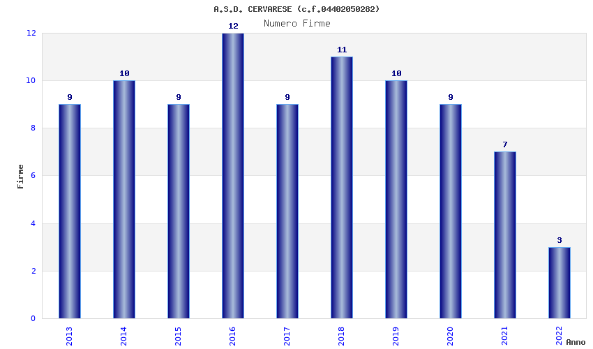 | Anno | Firme | Importi | Media | Naz. | Reg. | Prov. | Comu. |