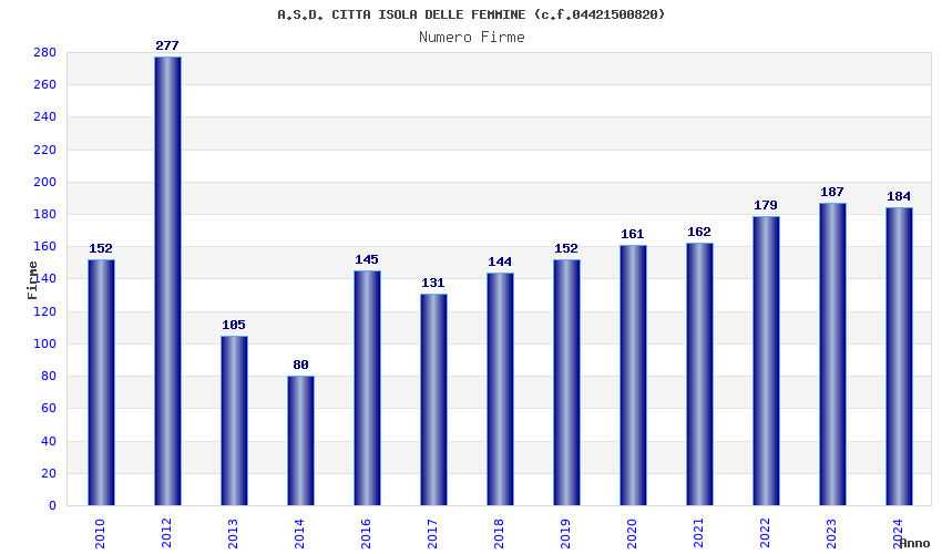Anno Firme Importi Media Naz. Reg. Prov. Comu.