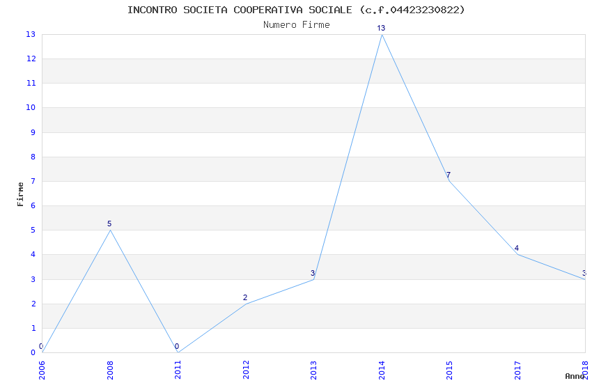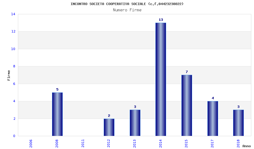 | Anno | Firme | Importi | Media | Naz. | Reg. | Prov. | Comu. |