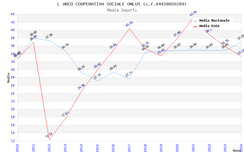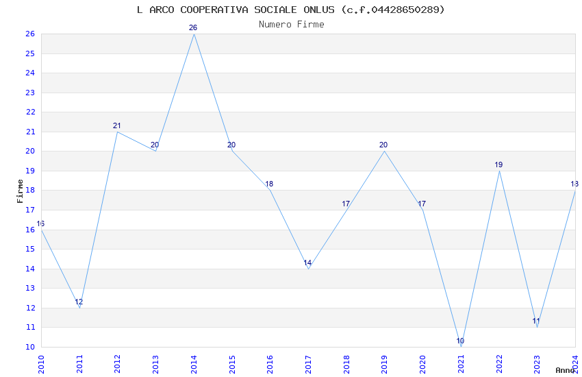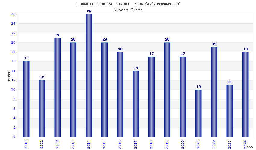 | Anno | Firme | Importi | Media | Naz. | Reg. | Prov. | Comu. |