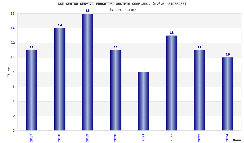 | Anno | Firme | Importi | Media | Naz. | Reg. | Prov. | Comu. |