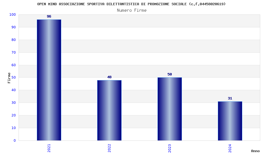 | Anno | Firme | Importi | Media | Naz. | Reg. | Prov. | Comu. |