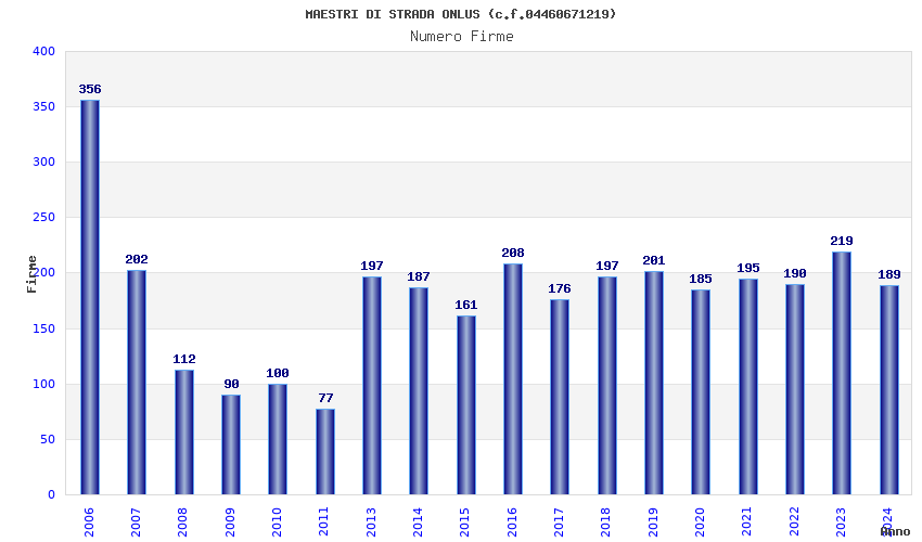 | Anno | Firme | Importi | Media | Naz. | Reg. | Prov. | Comu. |