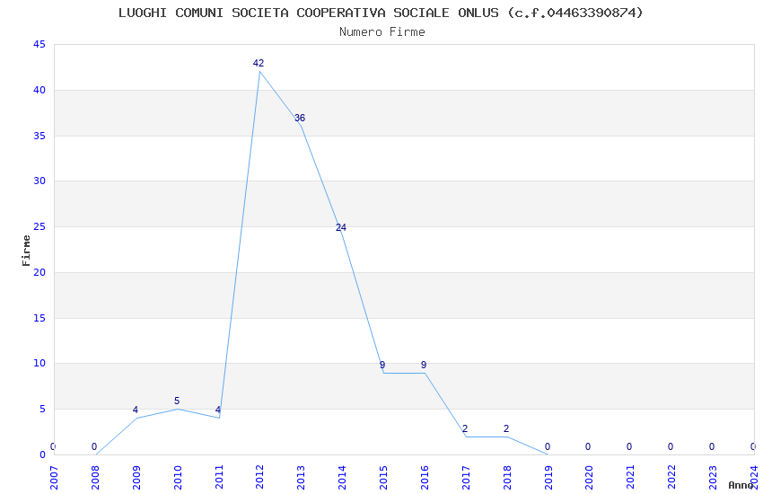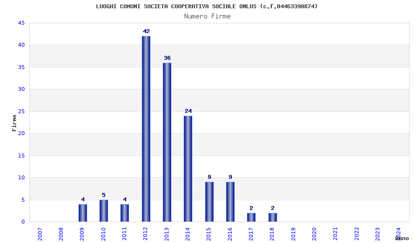 | Anno | Firme | Importi | Media | Naz. | Reg. | Prov. | Comu. |