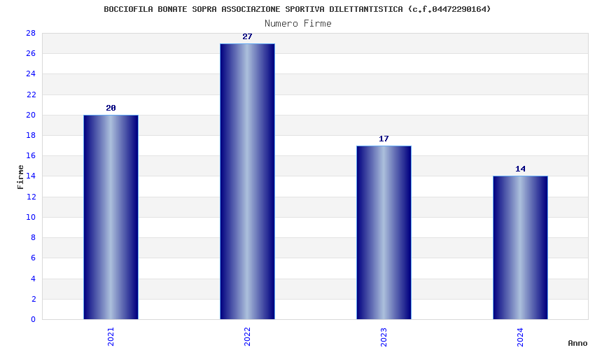 | Anno | Firme | Importi | Media | Naz. | Reg. | Prov. | Comu. |
