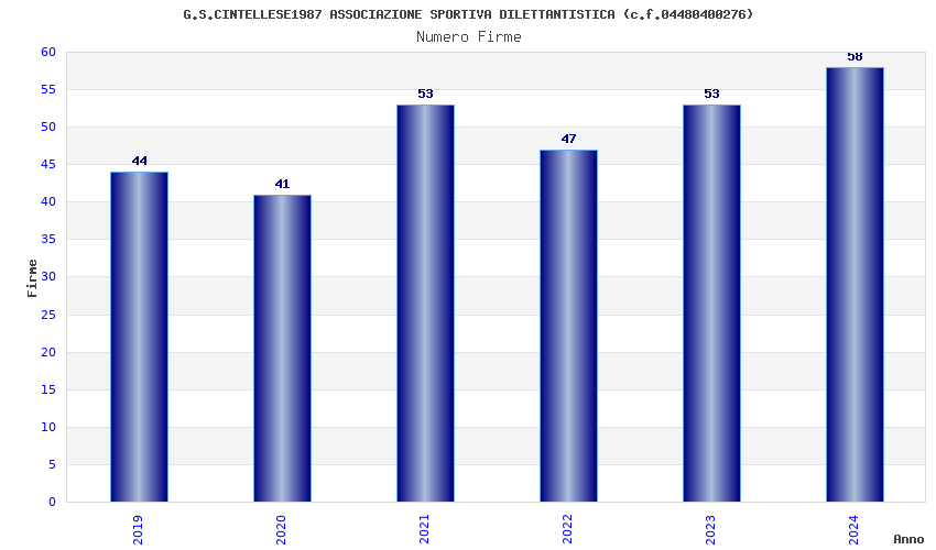 | Anno | Firme | Importi | Media | Naz. | Reg. | Prov. | Comu. |