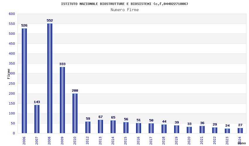 | Anno | Firme | Importi | Media | Naz. | Reg. | Prov. | Comu. |