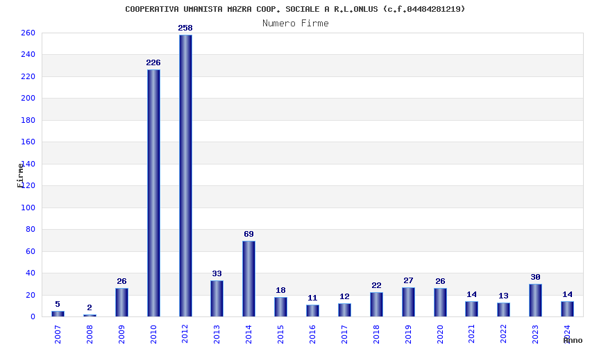 | Anno | Firme | Importi | Media | Naz. | Reg. | Prov. | Comu. |