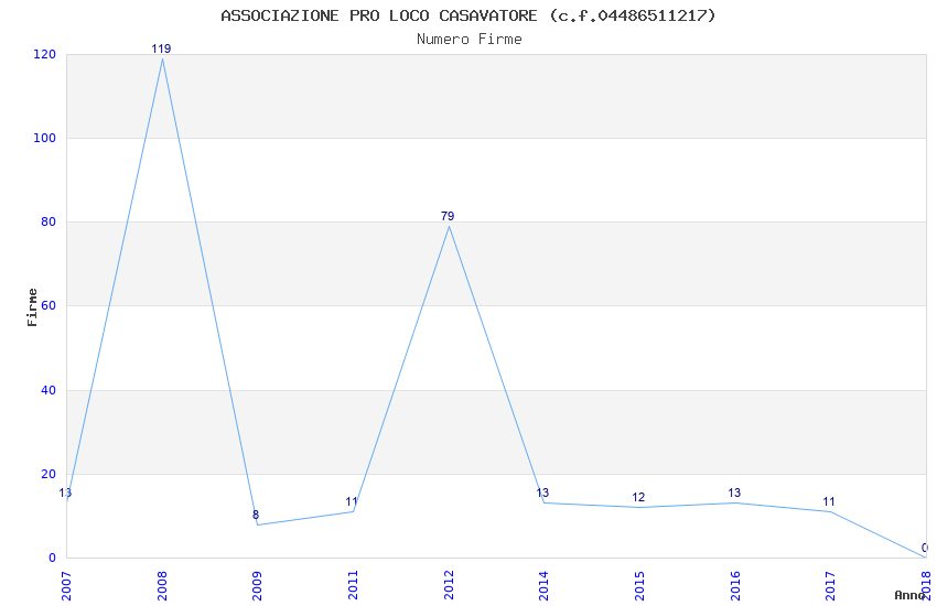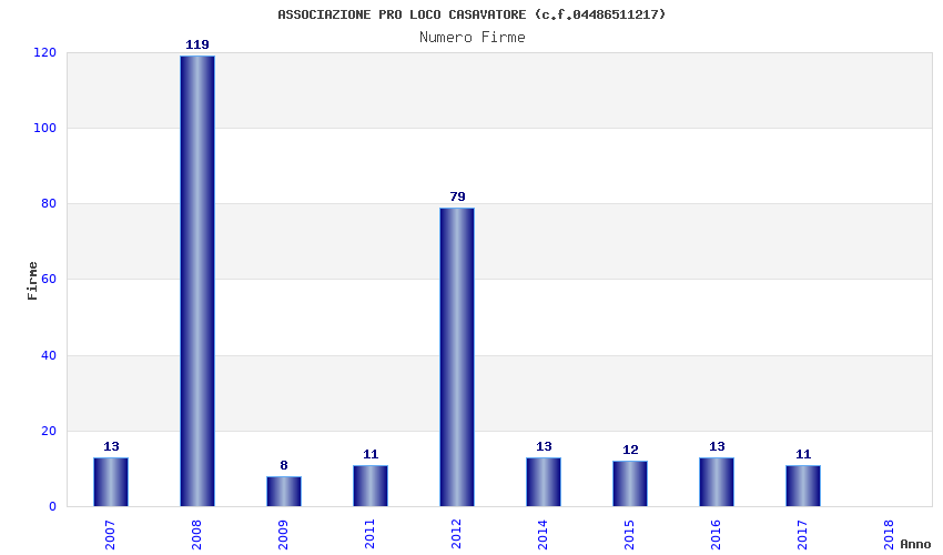 | Anno | Firme | Importi | Media | Naz. | Reg. | Prov. | Comu. |