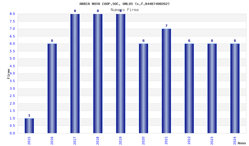 | Anno | Firme | Importi | Media | Naz. | Reg. | Prov. | Comu. |