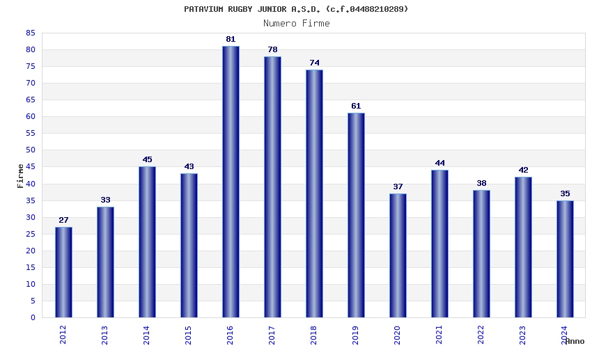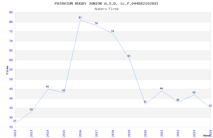 | 2016 | 81 | 3.635,38 | 44,88 | 14.690 | 1.406 | 329 | 7 |