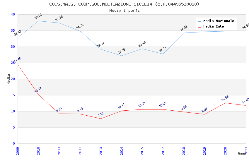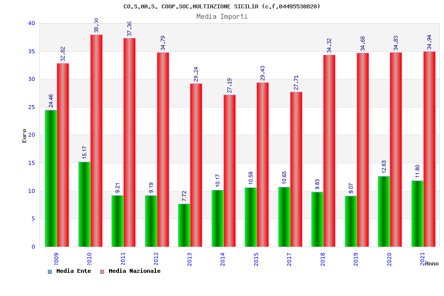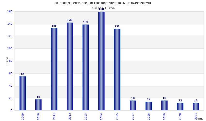 | Anno | Firme | Importi | Media | Naz. | Reg. | Prov. | Comu. |
