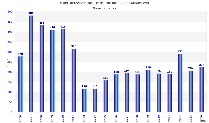 | Anno | Firme | Importi | Media | Naz. | Reg. | Prov. | Comu. |