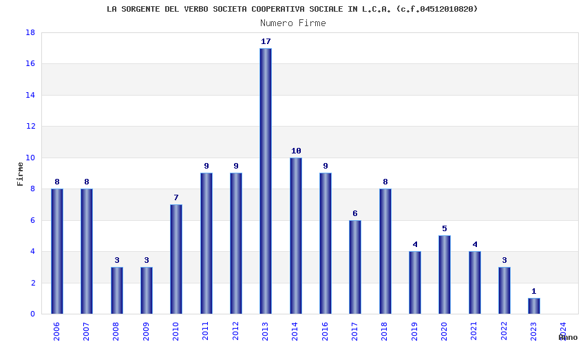 | Anno | Firme | Importi | Media | Naz. | Reg. | Prov. | Comu. |