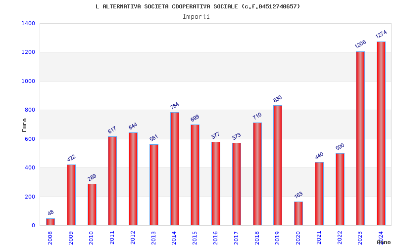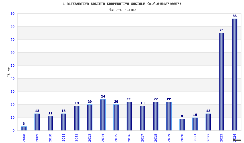 | Anno | Firme | Importi | Media | Naz. | Reg. | Prov. | Comu. |